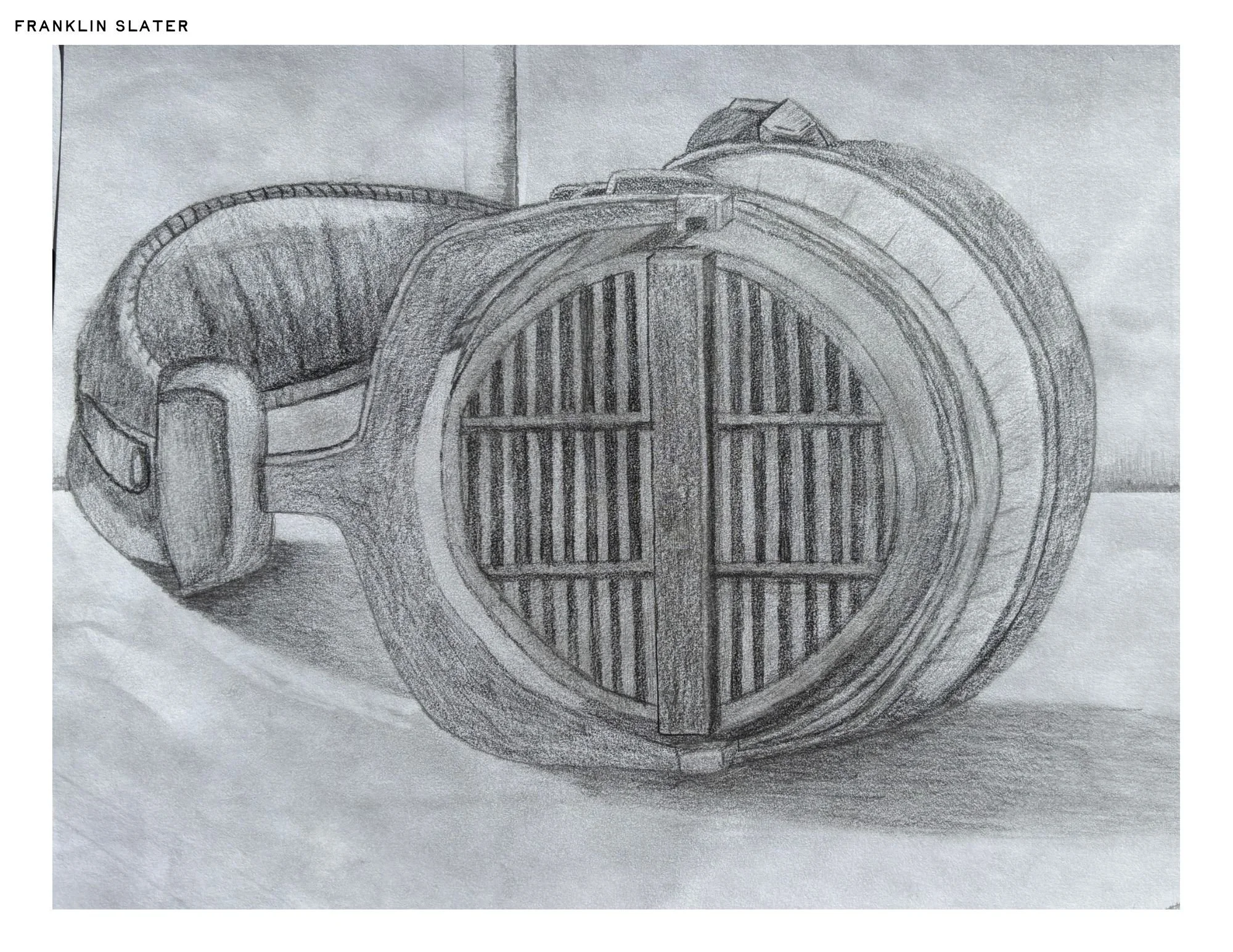 Description: An observational free drawing of my headphones, focusing on incorporating perspective and shading to capture form and realism.